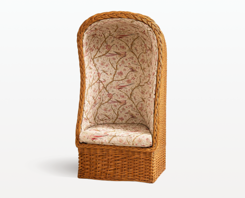 Cette jolie cabine au tissu floral et aviaire et au rotin blond datant des années 70 conférera à votre espace un doux refuge. Munie d’anses latérales en rotin, il vous sera possible de déplacer avec facilité la cabine où bon vous semble.