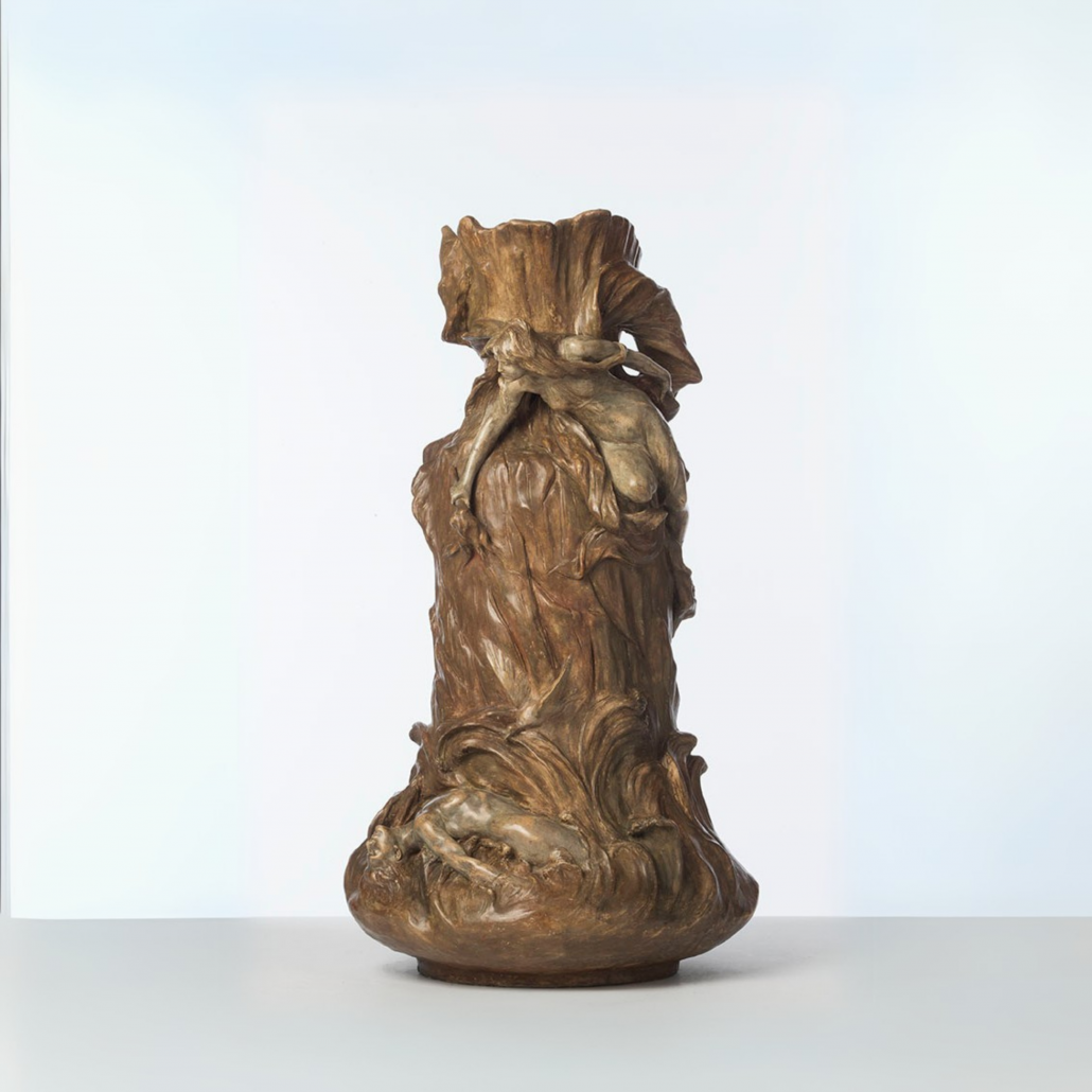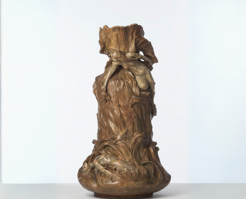 This marked, numbered and signed vase is an astonishing testimony to the importance of the Goldscheider factory on the international artistic scene at the turn of the 20th century. Its iconography and decoration reveal a superb alchemy between the European Symbolist heritage of the 1880s and 1890s and the style advocated by Art Nouveau artists. Since its creation in 1885, Friedrich Goldscheider’s factory has been at the forefront of the Viennese ceramics industry. It set the trend and played a full part in the revival of artistic ceramics in the last decades of the 20th century. The company’s many assets include its own technique, glazed terracotta, the best sculptors and ceramists in Central Europe, and its unfailing inventiveness.