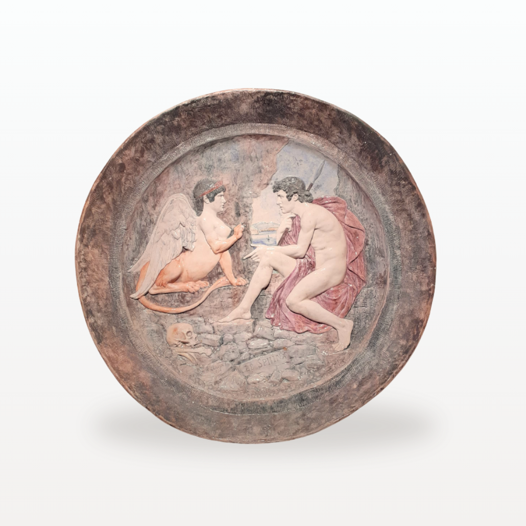 Plat « Le Sphinx », faïence émaillée polychrome, Max Claudet, 1886